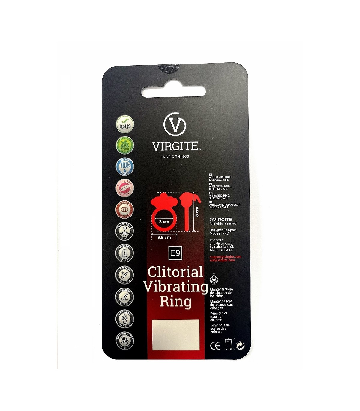 Anillo vibrador con conejito realizado en silicona suave y sedosa de gran calidad. Presentado en un elegante blister con trasera dura.