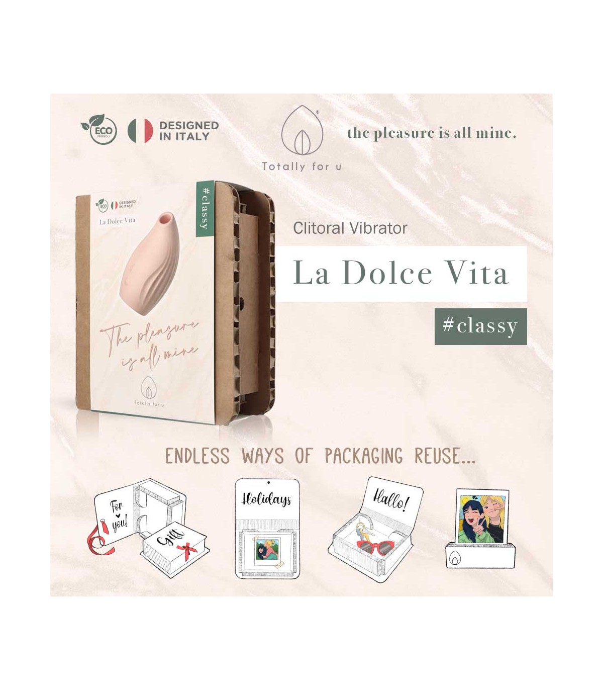 La Dolce Vita nace para colmar de placer tu intimidad. La forma y el diseño exclusivos dan la bienvenida a tus manos, otorgando un control fácil y total del dispositivo.