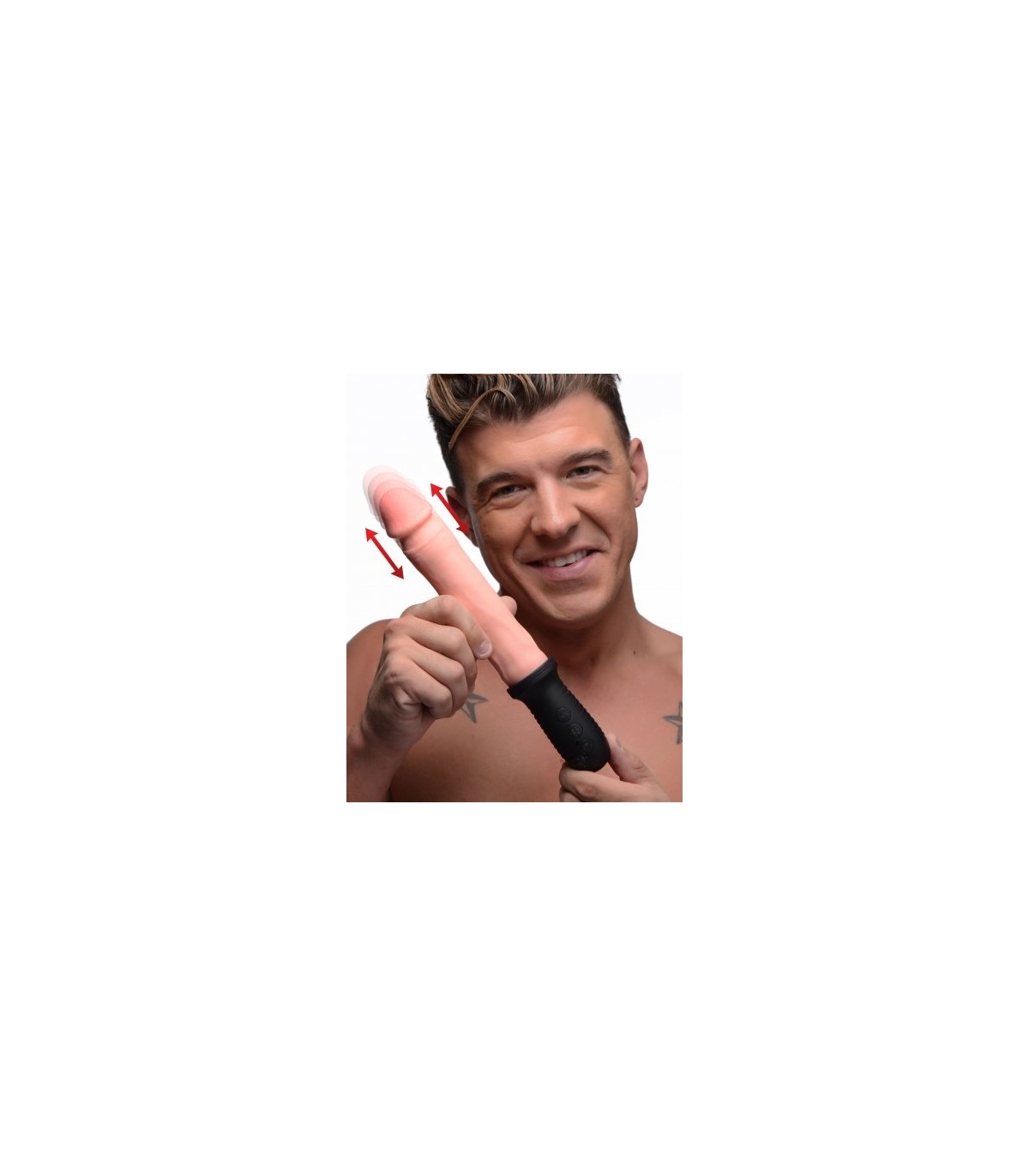 Los controles de fácil acceso y uso en el mango de este Pounder te permiten cambiar tu forma de jugar con facilidad. Recorra 8 modos de vibración para acompañar las 3 velocidades de empuje automático y encuentre la combinación perfecta que se adapte a su estilo de juego. Envuelve tus manos alrededor del mango de agarre de este consolador para golpear a tu pareja con más confianza; agrega otra capa de placer y activa la vibración mientras empujas sus agujeros hasta el clímax.